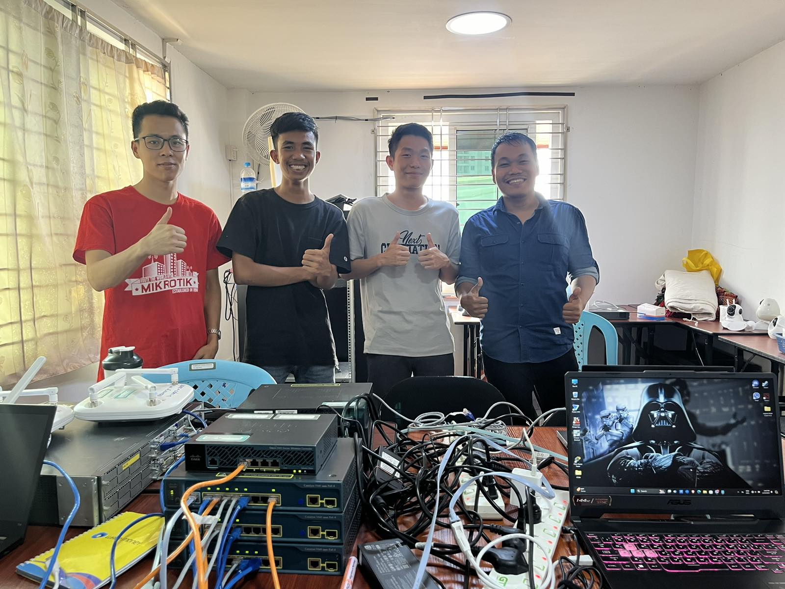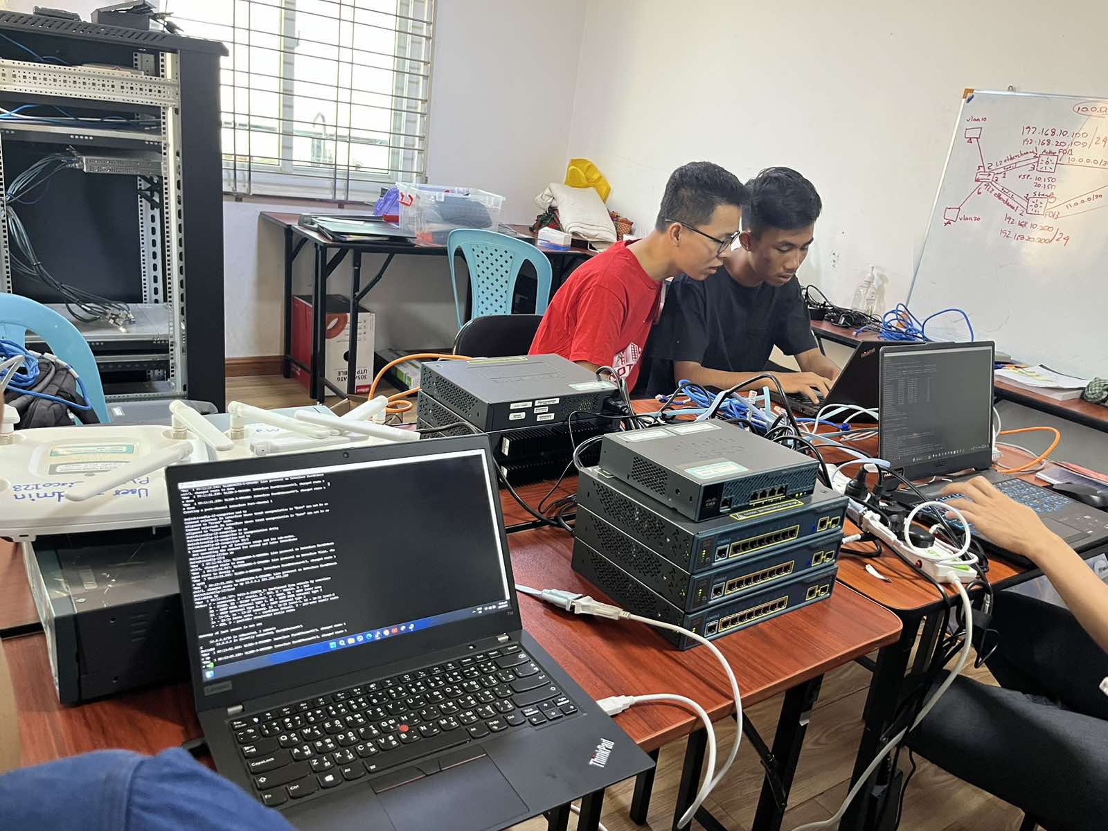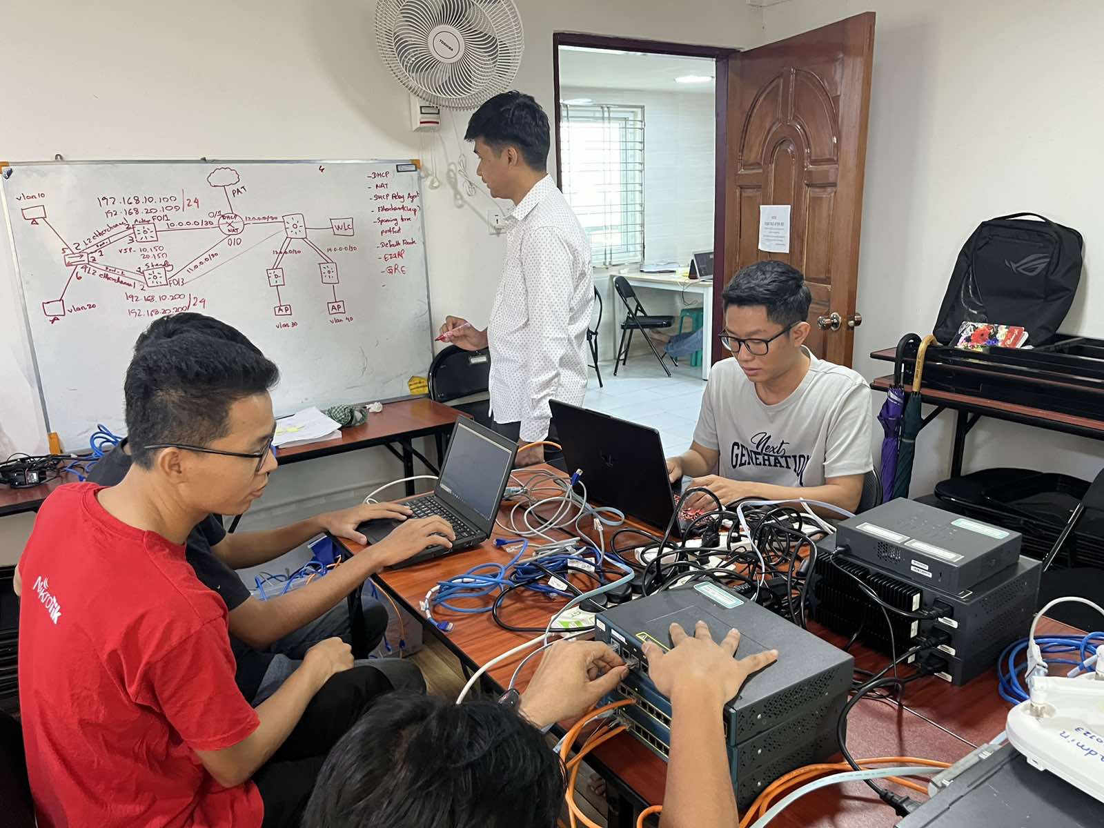 In our lab sessions, which are geared towards preparing aspiring IT Engineers for employment in Singapore, Japan, and Thailand, practical training is conducted using cutting-edge devices and technologies, including servers, firewalls, Fortinet, and NAS systems, all of which are provided at our school. Therefore, Students can practice using those devices at any time.